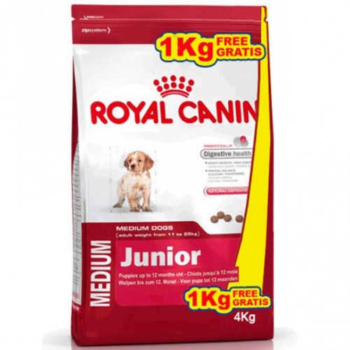 АКЦИЯ! (3,0+1,0) Royal Canin Medium Junior, для щенков средних собак до 12 мес, 4,0 кг